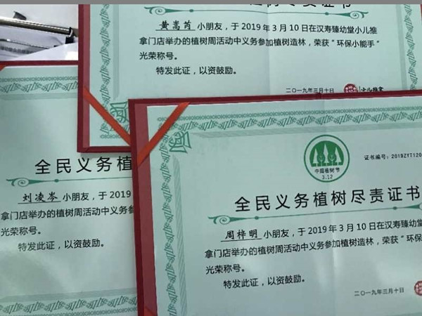 植樹周取得了成功,臻幼堂小兒推拿還為每一位小朋友頒發了全民義務植樹盡責證書,小朋友非常開心。對于此次活動,不僅孩子開心,家長們也非常感謝臻幼堂小兒推拿,讓孩子的成長增加了一節重要的“綠色健康”認知課,通過自己的勞動,打造美麗的生活環境,這是一件非常有意義的事情,讓孩子樹立保護綠化、愛護環境的意識,也讓孩子們德智體美勞發展,更增進了家人與孩子之間的感情。臻幼堂小兒推拿植樹節公益活動,種下的是希望,守護的是健康!