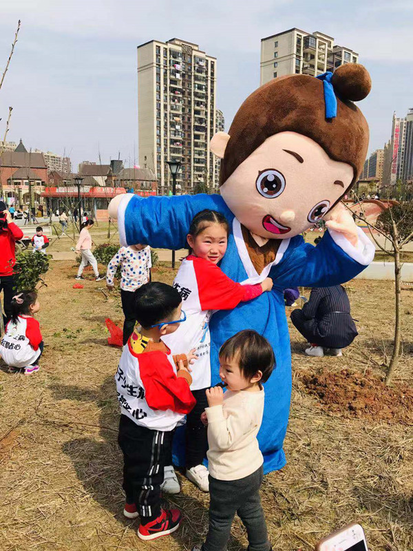 活動開展當天,在臻幼堂湖南區域門店的精心準備下,”小堂豆”和大家一起植樹,帶領著家長和孩子走進植樹現場,孩子看到“小堂豆”勞動的熱情更高!